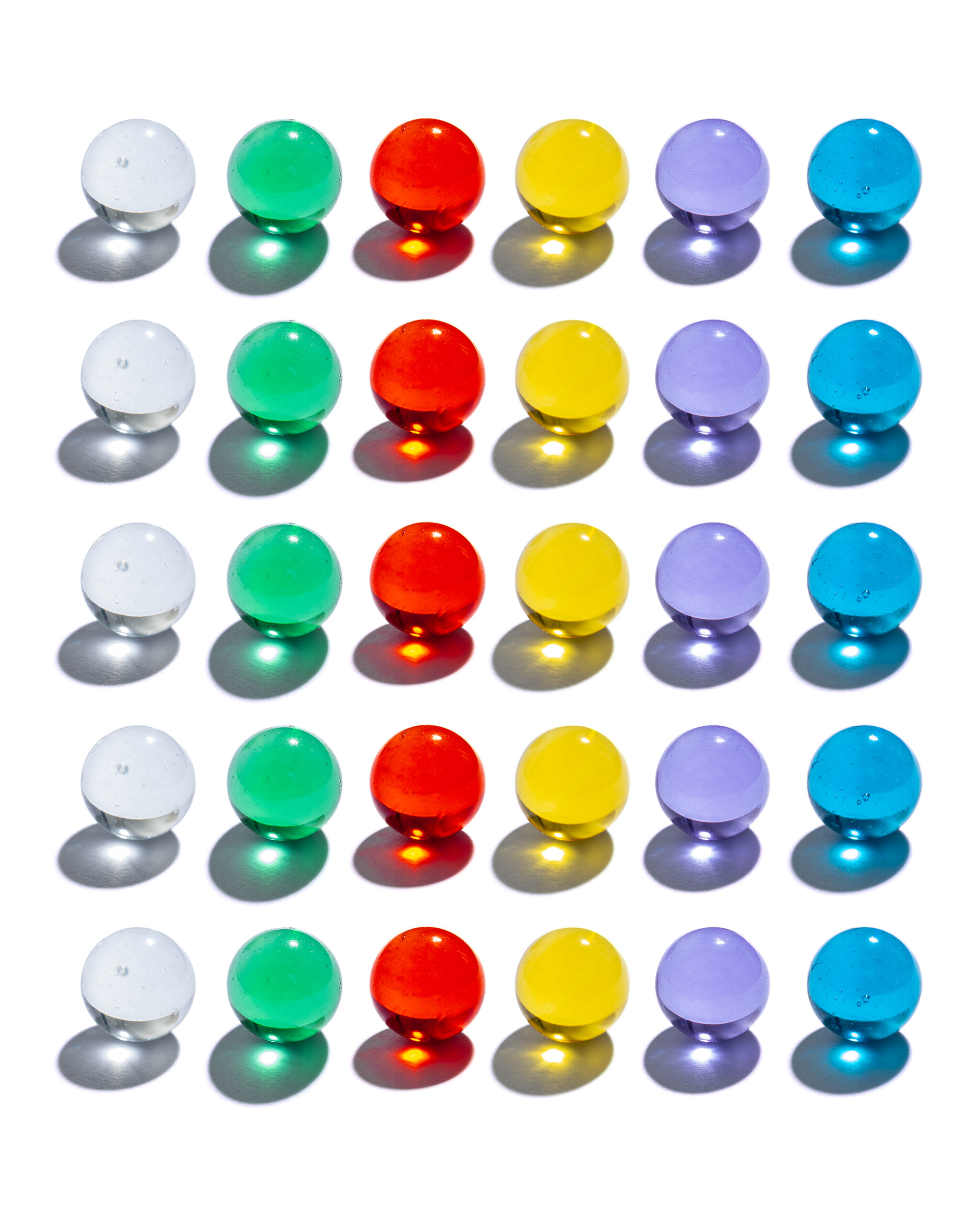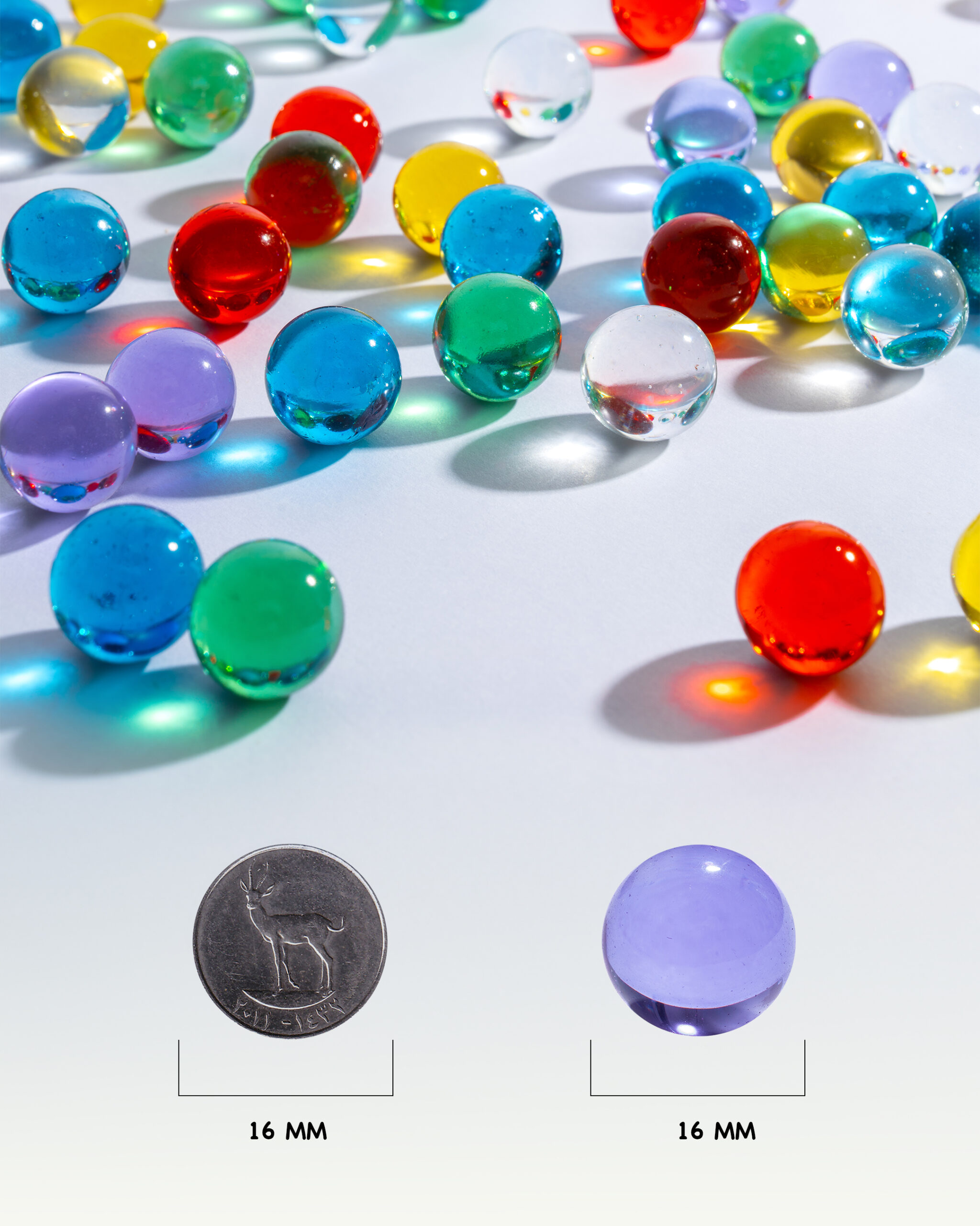 ๐ฎ 6 transparent crystal colors that react beautifully when light is directed onto them, creating stunning shade reflections beneath each marble.